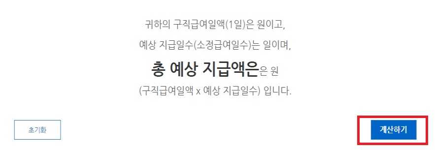 실업급여는 인터넷으로 간단히 계산해 볼 수 있습니다. 하나씩 단계별로 되어있으니 쉽게 따라 할 수 있습니다.